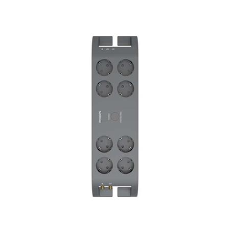 Beltéri elosztósor túlfeszültség-védelemmel.-túlfeszültség-védő-garancia: 200 000 EUR-8 aljzat-áram- és túlfeszültség-jelzők-maximális áramerősség: 16 A-energiaelnyelés (3 vonalas védelem): 1800 J-maximális teljesítmény: 3680 W-koaxiális kábelvédelem-telefon/fax védelem-2 m-es kábel